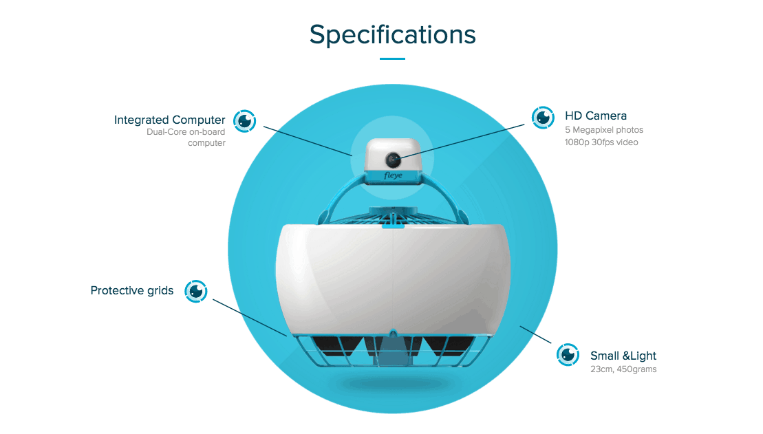 [perfectpullquote align=”full” cite=”” link=”” color=”” class=”” size=””]”Not satisfied with current drone design, we went back to the drawing board and have invented a spherical flying machine that is safe, simple to use and autonomous.”, Fleye[/perfectpullquote]